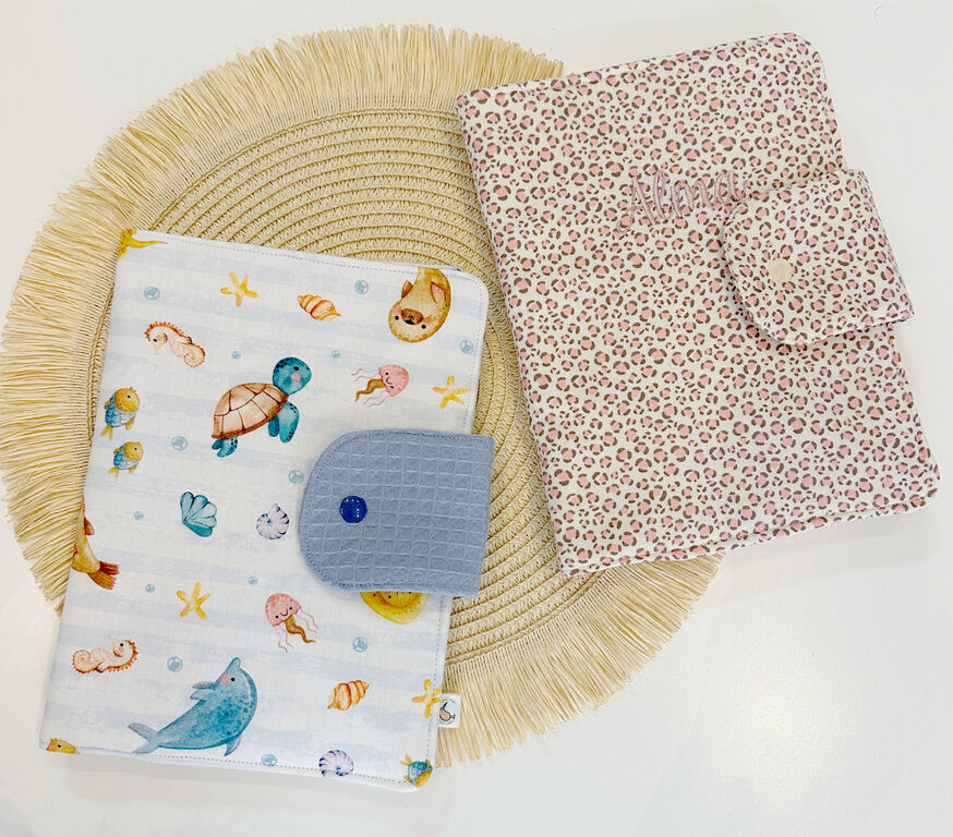 Portadocumentos personalizado para bebés, puedes elegir las telas que más te gusten de nuestro catálogo y añadirle un nombre bordado o en vinilo, un artículo hecho a mano con mucho mimo.